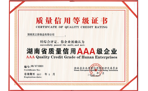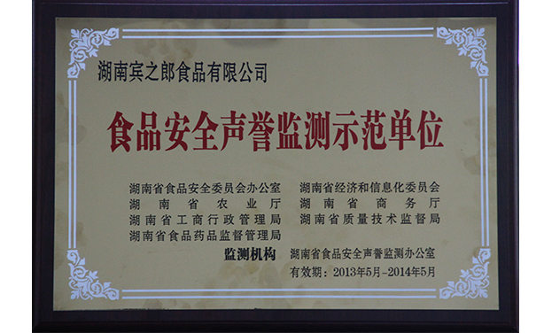 “賓之郎”商標首次被湖南省工商局評為“湖南省著名商標”。