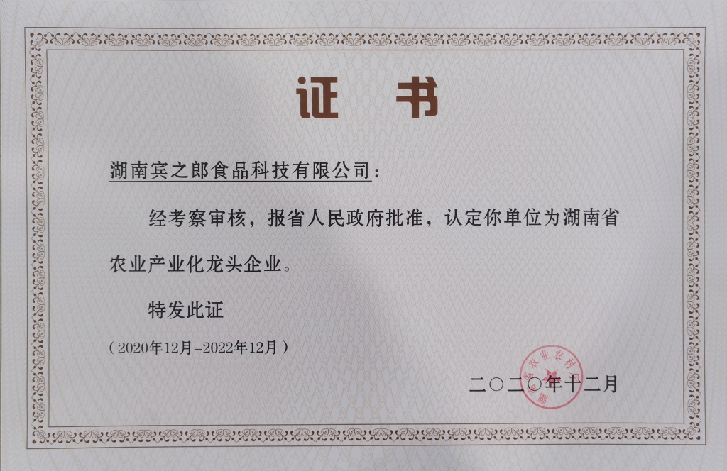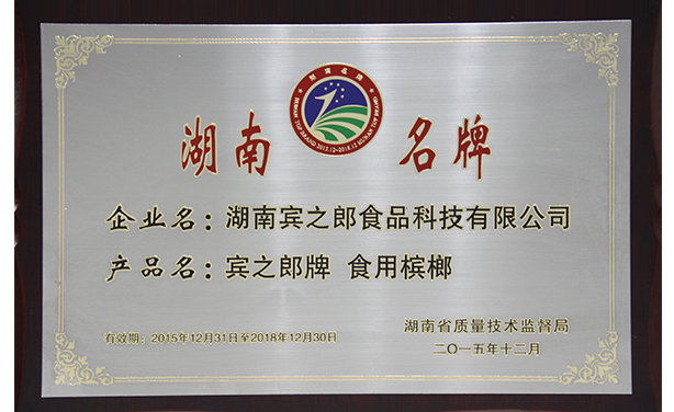 “湖南省檳榔食品加工行業(yè)龍頭企業(yè)”,并榮獲“湖南省檳榔食品優(yōu)質(zhì)產(chǎn)品”稱號。