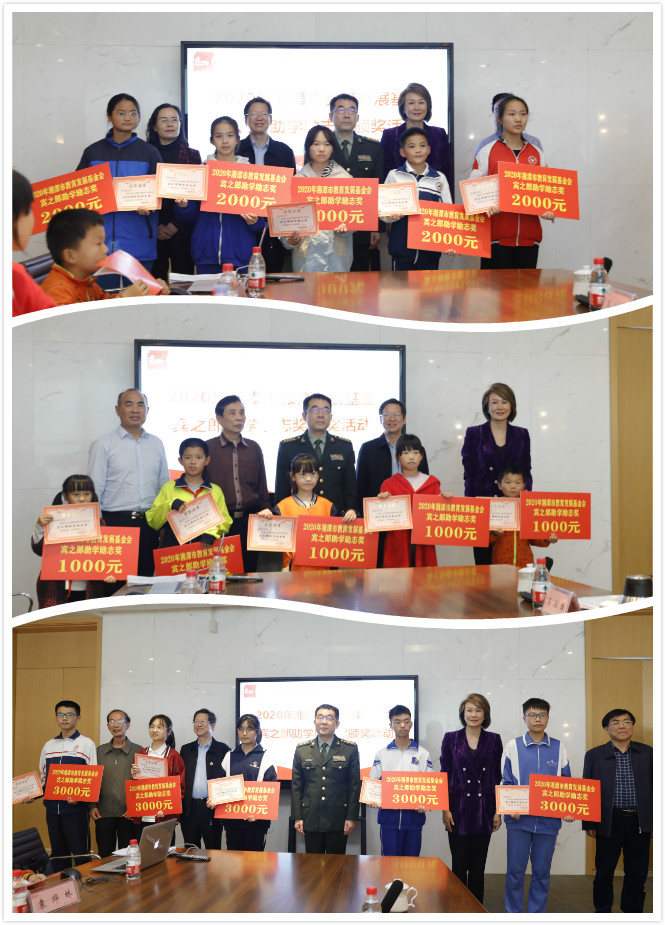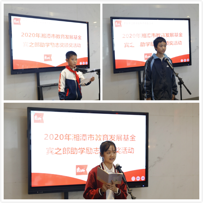 湘潭市政協(xié)副主席周佩珞宣讀《關(guān)于表彰2020年湘潭市教育發(fā)展基金·賓之郎助學(xué)勵志獎獲獎學(xué)生通報》,2020年,共有349名同學(xué)獲得“賓之郎·助學(xué)勵志獎”表彰獎勵。他表示,希望獲獎同學(xué)以堅強的意志,砥礪奮斗,處逆境而立志成才;也希望廣大中小學(xué)生以獲獎學(xué)生為榜樣,樹立遠大理想,發(fā)奮學(xué)習(xí),做有理想、有志向、有擔(dān)當(dāng)?shù)男聲r代好少年,為實現(xiàn)中華民族偉大復(fù)興而拼搏奮進。