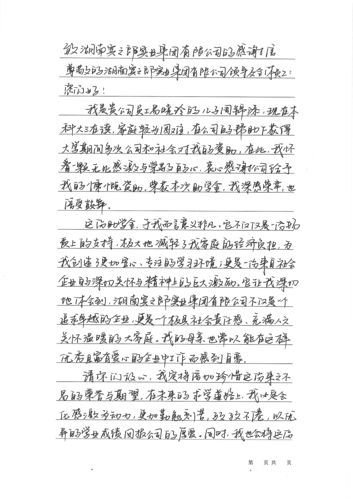 雖然往屆學(xué)子的感謝信未能在現(xiàn)場集中展示,但感恩之情卻在現(xiàn)場溫暖流淌。現(xiàn)就讀大三的周錦添同學(xué)在信中寫道:"這份助學(xué)金不僅僅是一份物質(zhì)支持,更是一份深切關(guān)懷與精神激勵。賓之郎不僅是一個追求卓越的企業(yè),更是一個充滿人文關(guān)懷溫暖的大家庭。"這些真摯的感言,成為助學(xué)活動最珍貴的回響。