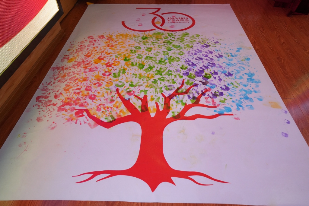 "掌印同心"環(huán)節(jié)成為全場(chǎng)溫情的焦點(diǎn)。大小手印共同繪制企業(yè)三十年華章,200余個(gè)彩色手印匯聚成企業(yè)發(fā)展的美好愿景。每個(gè)家庭的獨(dú)特印記都留在了企業(yè)發(fā)展的畫(huà)卷上,這不僅是一次創(chuàng)作,更是一次家企關(guān)系的深度鏈接。